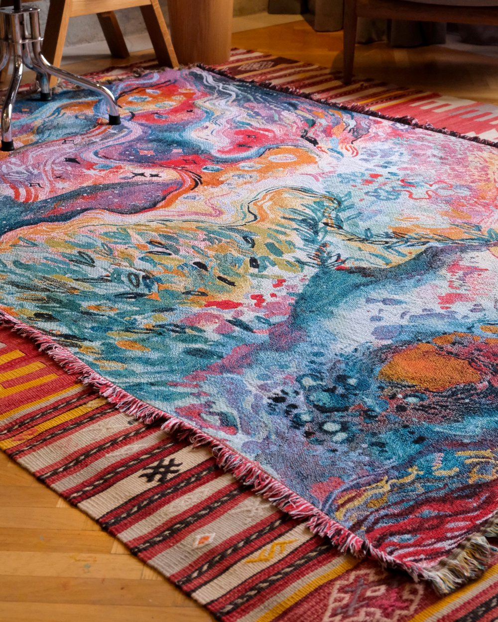✮ One-of-a-kind woven blanket design featuring Karen Cheok’s painting “Eudaimonia”